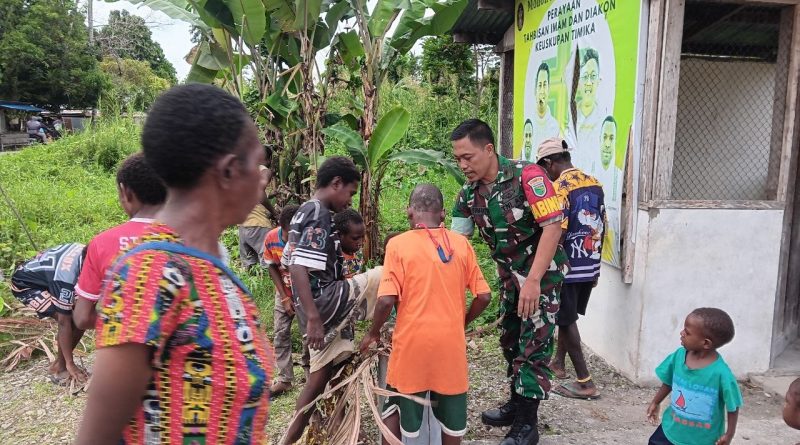 Timika – Dalam upaya mempererat hubungan dengan masyarakat sekaligus menjaga kebersihan lingkungan, Babinsa Koramil 1710-07/Mapurujaya, Pelda Sumantri dan Sertu Tangkas Budiono, mengajak warga melaksanakan gotong royong membersihkan halaman Gereja Santu Mikhael di Kampung Hiripau, Jumat (10/4/2026).