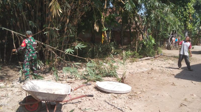 Seperti hari ini dilakukan Sertu Abdul Rozy anggota Koramil Tipe B 0802/16 Jetis, Kodim 0802/Ponorogo yang sehari hari bertugas menjadi Babinsa Desa Karanggebang Kecamatan Jetis Kabupaten Ponorogo yang hari ini membantu warga yang sedang melaksanakan kerja bakti.