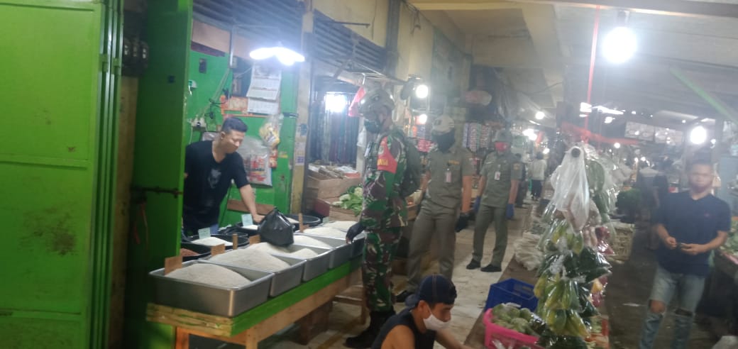 Jakarta, Anggota Koramil 06/CP Serda Alan La Wae bersama Tiga Pilar kecamatan Cempaka Putih melaksanakan imbauan protokol kesehatan di Pasar Rawa Kerbo, Cempaka Putih Timur, Cempaka Putih, Jakarta Pusat.