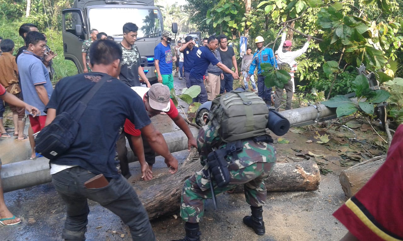 Dengan menggunakan peralatan seadanya dengan sigap Prajurit Beruang Hitam saling bahu-membahu bersama masyarakat sekitar membersihkan material longsor di beberapa titik yang menutup akses jalan, sehingga lalu-lalang masyarakat dan akses jalan utama Way Ratai yang semula tertutup dan tidak dapat dilalui kendaraan kembali lancar dan normal kembali, Sabtu(13/06/2020).