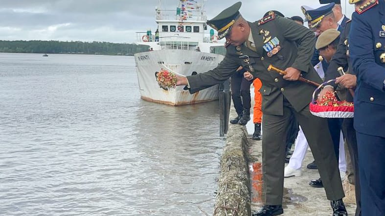 Dandim 1710/Mimika Ikuti Upacara Tabur Bunga di Pelabuhan Poumako Dalam Rangka Memperingati HUT Ke-80 Kemerdekaan RI