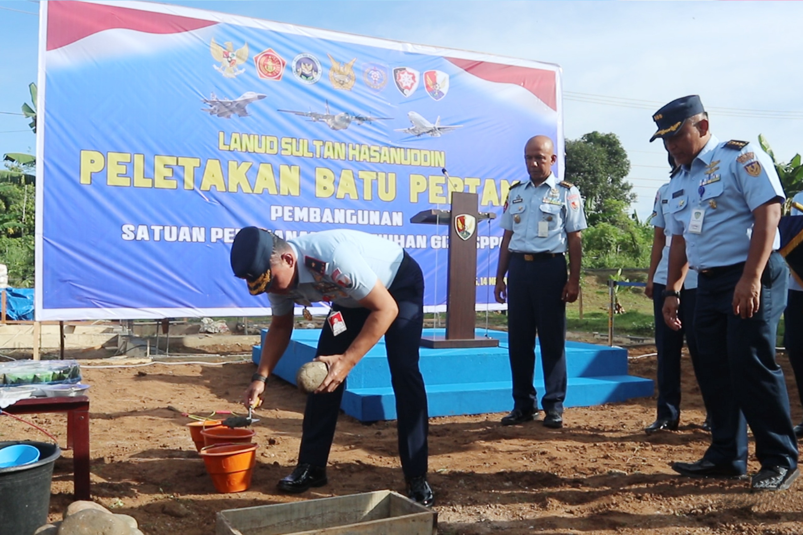 Danlanud Sultan Hasanuddin Melakukan Peletakan Batu Pertama Pembangunan Satuan Pelayanan Pemenuhan Gizi