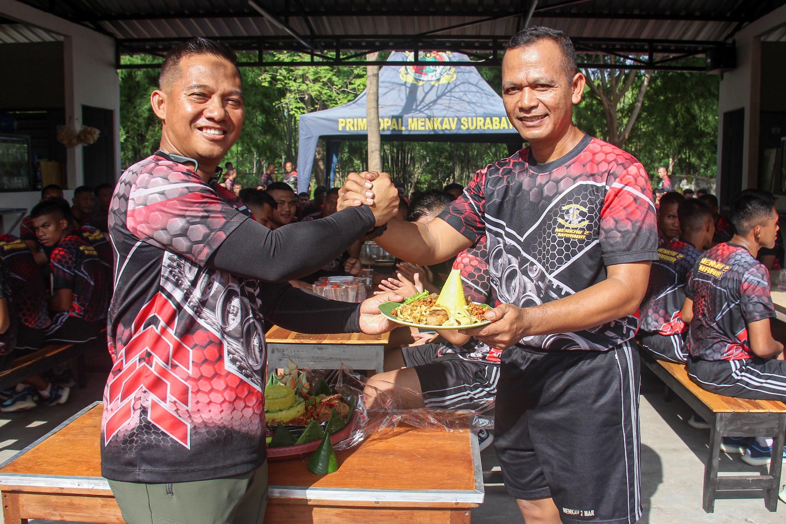 Sebagai wujud syukur dilaksanakan simbolis pemotongan tumpeng oleh Danmenkav 2 Mar yang diberikan kepada Pajasrek Menkav 2 Mar.