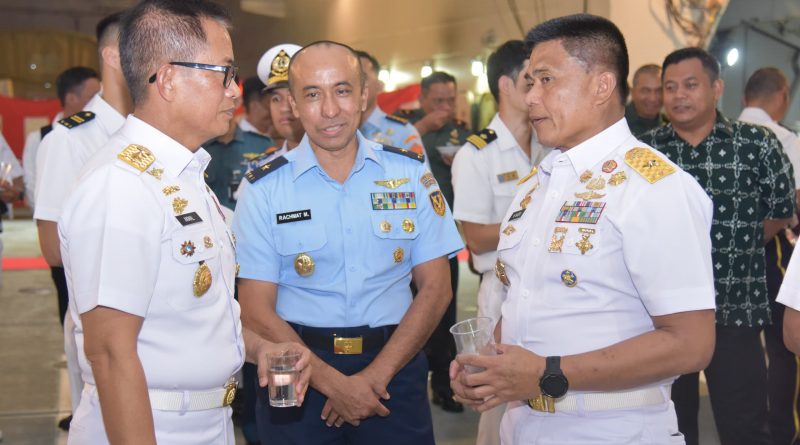 Jakarta. Kepala Staf Korps Marinir (KS Kormar) Brigadir Jendral Muhammad Nadir, M.Tr.Opsla yang mewakili Panglima Korps Marinir Letjen TNI (Mar) Dr. Endi Supardi, S.E., M.M., M.Tr.Opsla., CHRMP., CRMP. Menghadiri jamuan makan malam yang diselenggarakan di atas kapal perang Jepang, JS Osumi, yang sedang bersandar di Pelabuhan Tanjung Priok. Acara ini merupakan bagian dari upaya meningkatkan hubungan bilateral antara Tentara Nasional Indonesia dan Angkatan Laut Jepang. di Dermaga 107, Tanjung Priok, Jakarta Utara, Minggu (24/08/2025).