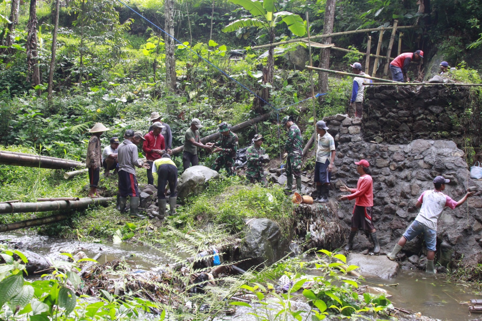 Dalam pengerjaan jembatan tersebut, para prajurit TNI bersama warga setempat saling bergotong royong dan bahu-membahu dalam setiap tahapan pekerjaan. Semangat kebersamaan tersebut menjadi kekuatan utama dalam pembangunannya.
