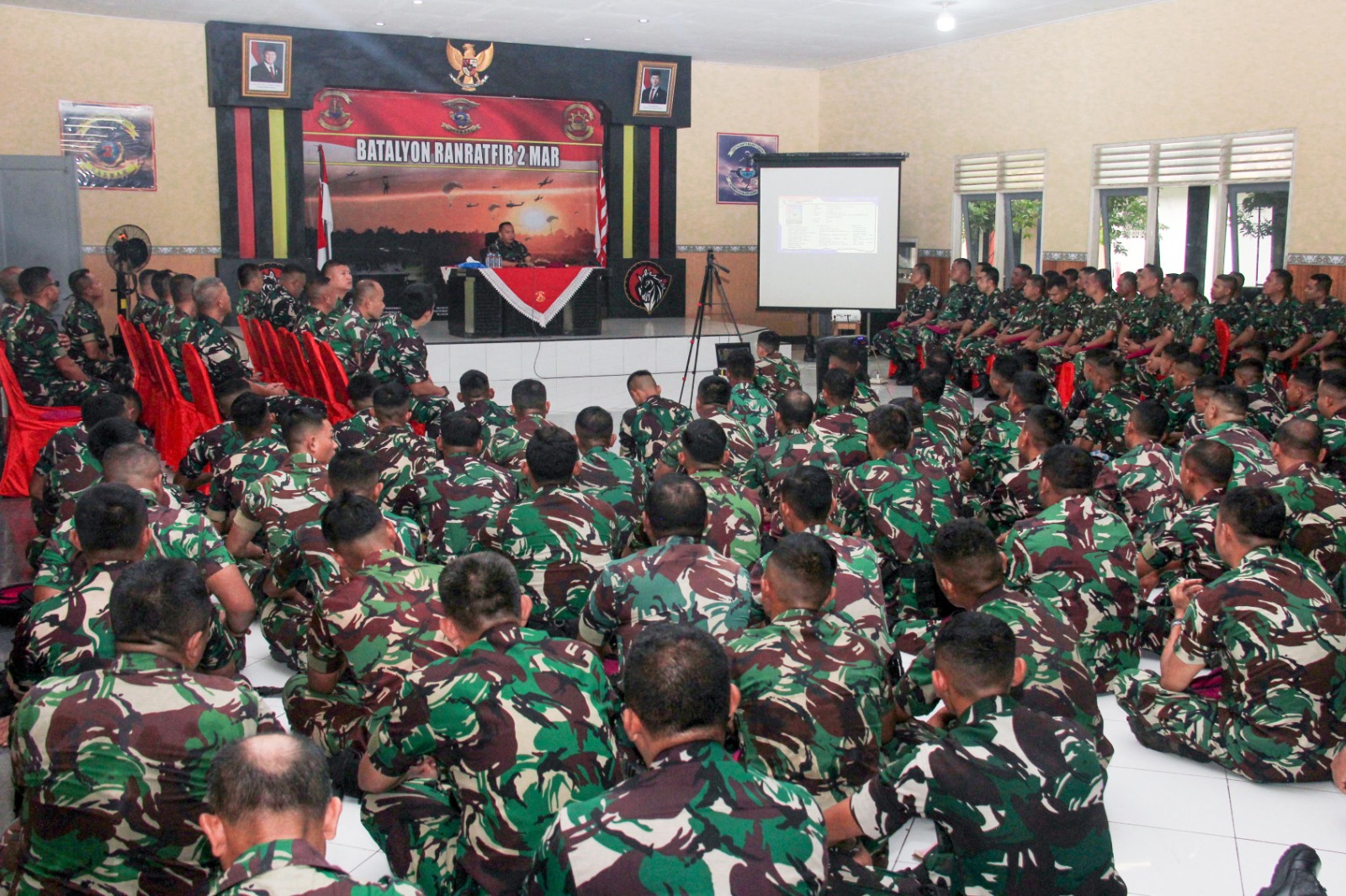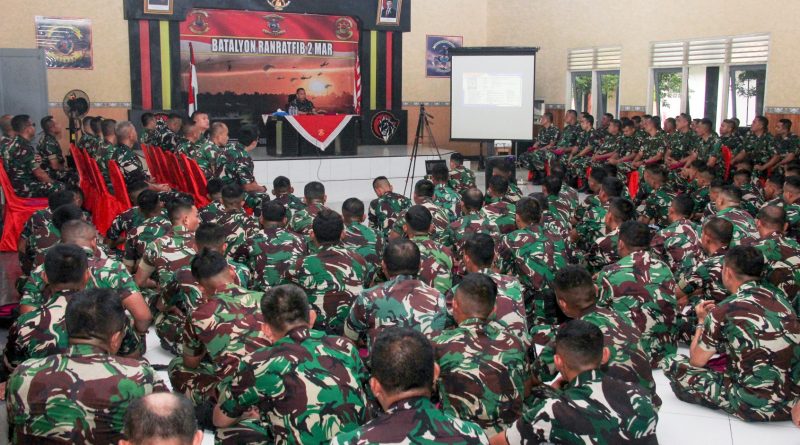 Surabaya, Mengawali langkah awal kepemimpinan, Komandan Resimen Kavaleri 2 Marinir Letkol Mar Iwan Permana, S.H., M.Tr.Hanla. melaksanakan kegiatan entry briefing kepada seluruh prajurit dan PNS beserta prajurit yang tergabung penugasan di wilayah ambalat, pulau terluar dan Satgas Pamwal Mabes TNI secara Vicon di Balai Prajurit Aris Haryanto Yonranratfib 2 Mar, Kesatrian Marinir Soepraptono, Semarung Ujung Surabaya. Selasa (30/12/2025).