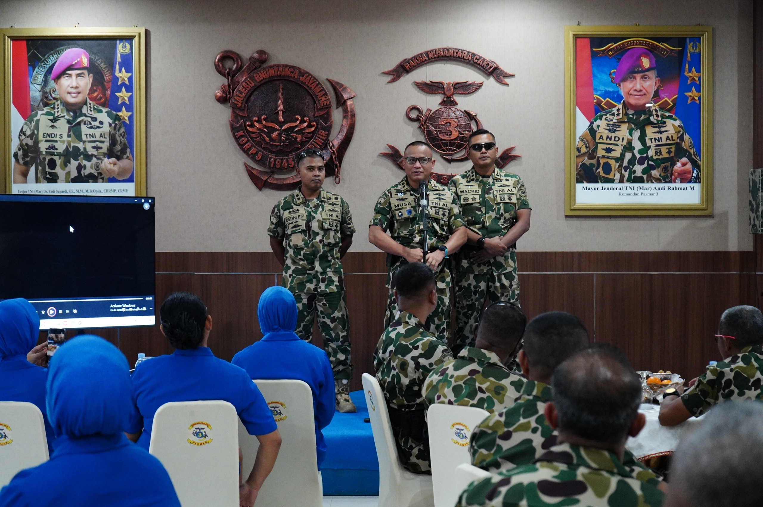 Kegiatan yang dilaksanakan di Lobby Mako Pasmar 3, Kesatrian Marinir Agoes Soebekti, Jl. Sorong–Klamono Km 16, Distrik Klaurung, Kota Sorong, Papua Barat Daya, Senin (23/02/2026), dihadiri para pejabat utama, Dankolak dan Dansatlak, serta prajurit di lingkungan Pasmar 3.