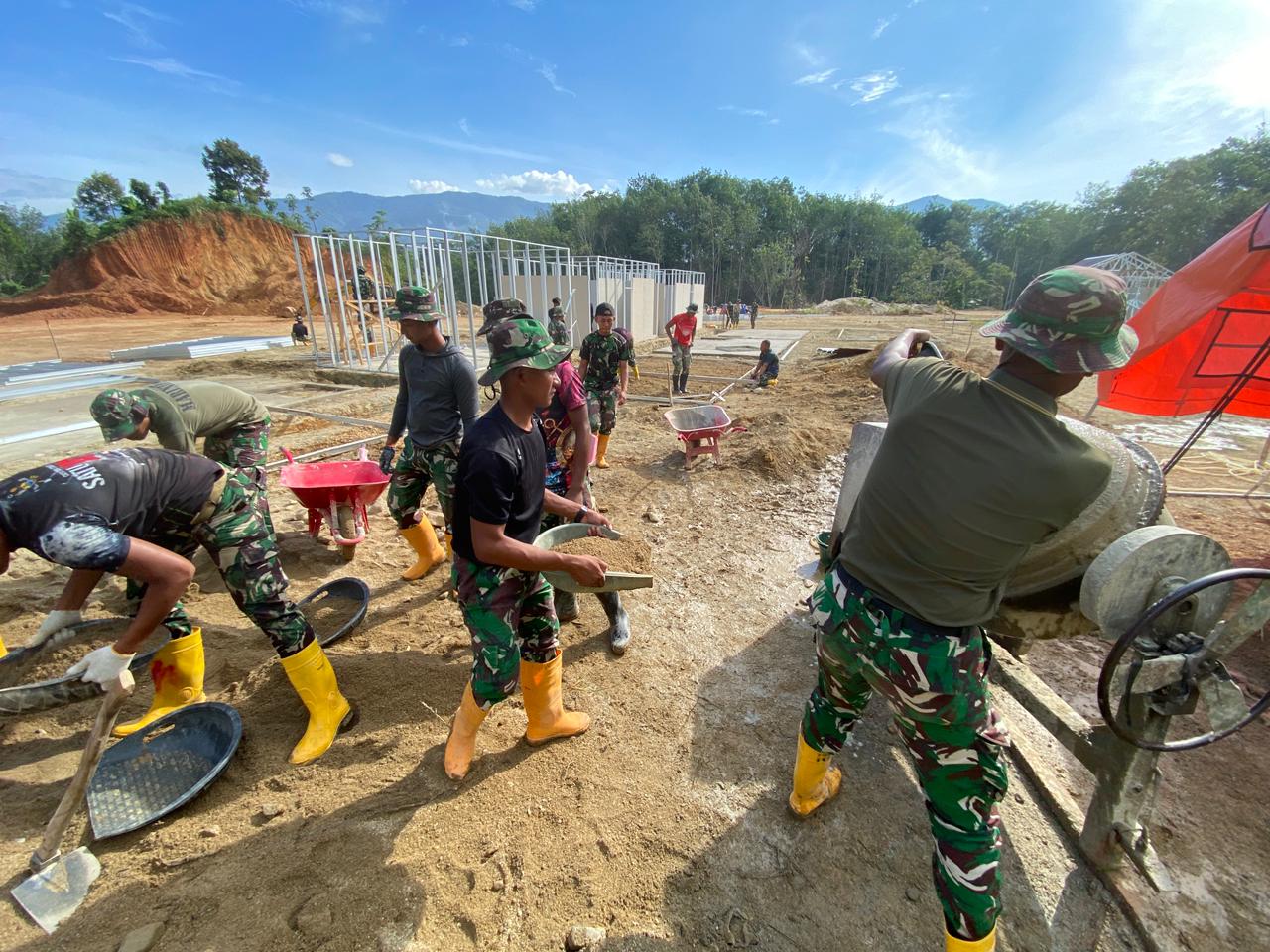 Prajurit Marinir kali ini fokus pada pembangunan hunian sementara bagi warga yang kehilangan tempat tinggal, khususnya di Desa Tolang Julu, Kecamatan Sayur Matinggi, dan Desa Batu Hula, Kecamatan Batang Toru.