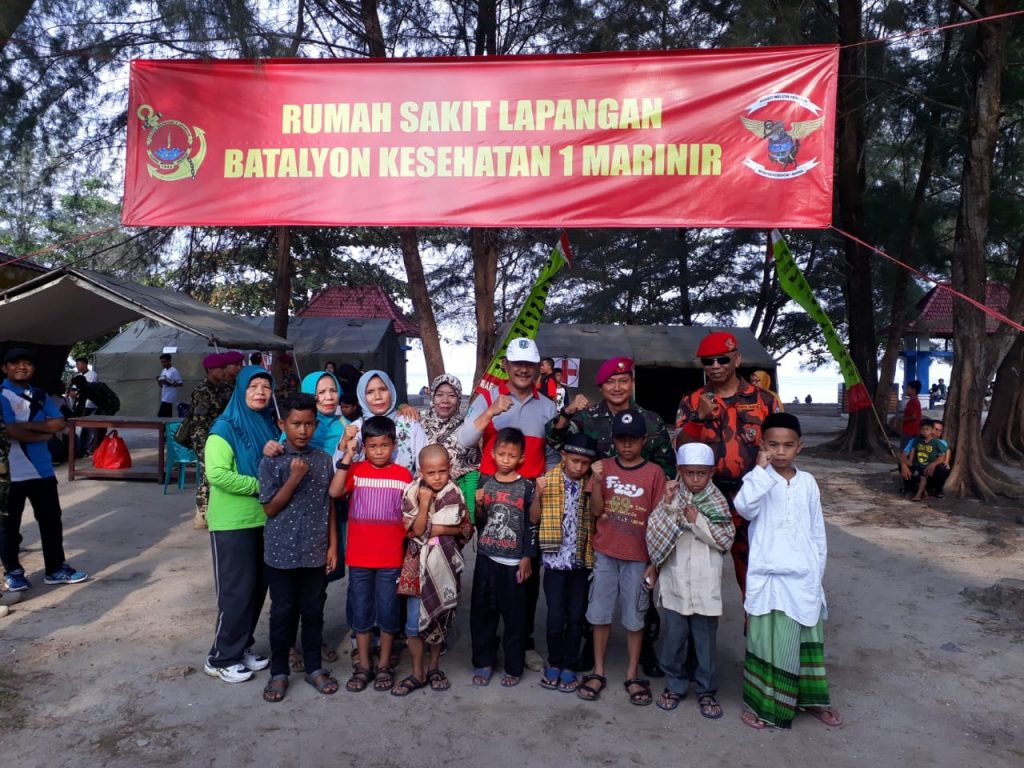 Letkol Arifin menambahkan, “Ada 56 anak yang kami sunat. Kegiatan ini merupakan rangkaian peringatan Hari Ulang Tahun ke 74 Korps Marinir. Minggu kemarin kami bhaksos di Antralina Sukabumi Jawa Barat.”