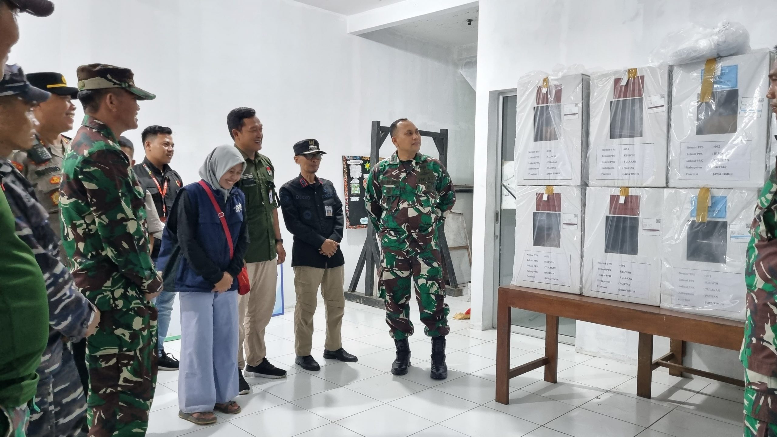 Pacitan,- Guna mendukung dan mensukseskan Pilkada serentak, Dandim berserta unsur terkait melaksanakan Pengecekan Pos Pengamanan Gudang Logistik Pilkada Tahun 2024 yang berlangsung di tiga kecamatan, yaitu Kecamatan Kebonagung, Kecamatan Tulakan, Kecamatan Sudimoro.Selasa(26/11/2024).