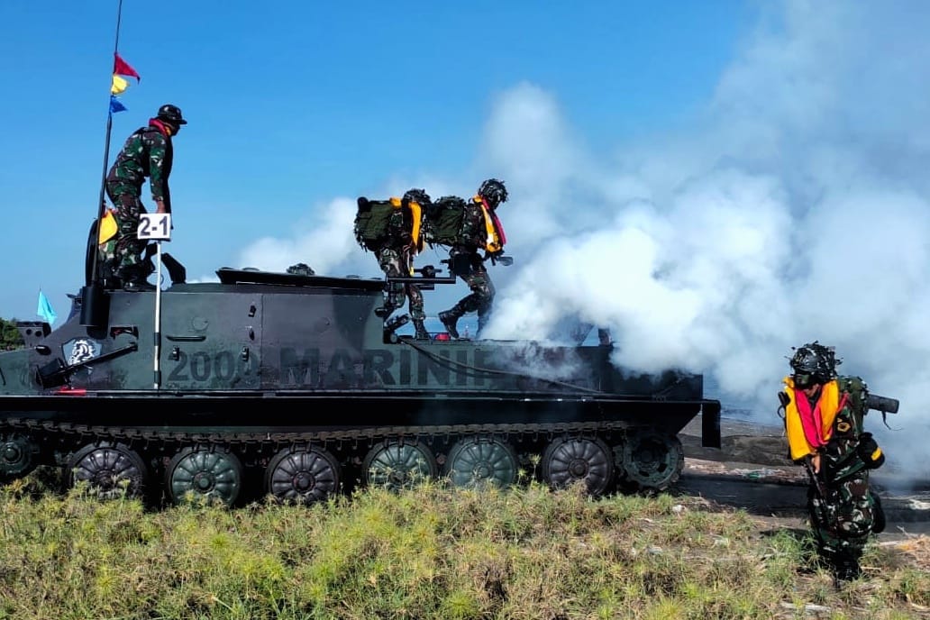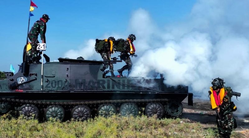 Situbondo. Meningkatkan kesiapan operasional Alustista maupun profesionalisme prajurit, Kendaraan Tempur (Ranpur) Batalyon Kendaraan Pendarat Amfibi 2 Marinir (Yonranratfib 2 Mar) mendaratkan pasukan pendarat untuk hancurkan kekuatan musuh dalam skenario latihan Operasi Amfibi Latihan Satuan Dasar (LSD) TW. I TA. 2026 yang di gelar di Pantai Banongan, Asembagus, Situbondo. Selasa (07/04/2026).
