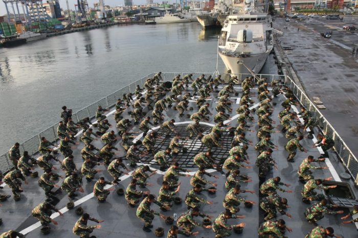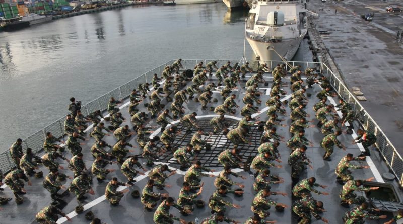 Jelang Serbuan dari Pasukan Pendarat Korps Marinir yang tergabung dalam Latihan Operasi Amfibi Tahun 2021 tetap menjaga kebugaran tubuh dengan melaksanakan pembinaan fisik yang dilaksanakan di 3 KRI yang berbeda yaitu KRI Teluk Ende 517, KRI Teluk Cirebon 543 dan KRI Teluk Sibolga 536. Rabu (07/04/2021).